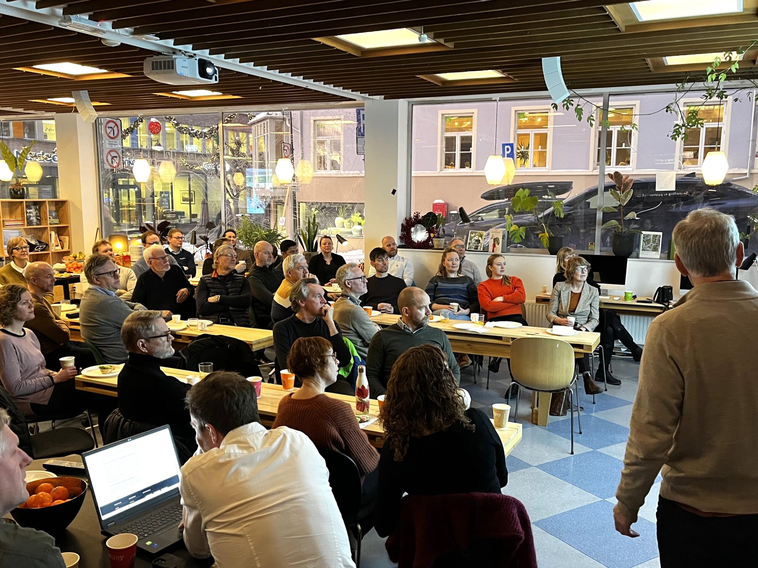 Das Treffen war das erste einer Reihe von Frühstücksseminaren, die unter der Schirmherrschaft von Climate Friendly Buildings Innlandet organisiert wurden. Das Treffen begann mit einem Briefing über das Projekt, und Eivind Selvig sprach zum Thema Was ist ein klimafreundliches Gebäude? Es gibt keine eindeutigen Antworten auf diese Frage, aber das Ziel muss sein, dass das Gebäude einen deutlich geringeren Klima-Fußabdruck aufweist als Gebäude, die nach „normalen“ Praktiken gebaut werden.
