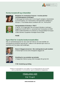 Save the date for the annual meeting and owner meeting for the member companies in Norwegian Wood Cluster. Program and link to registration will be sent by email as soon as it is ready.